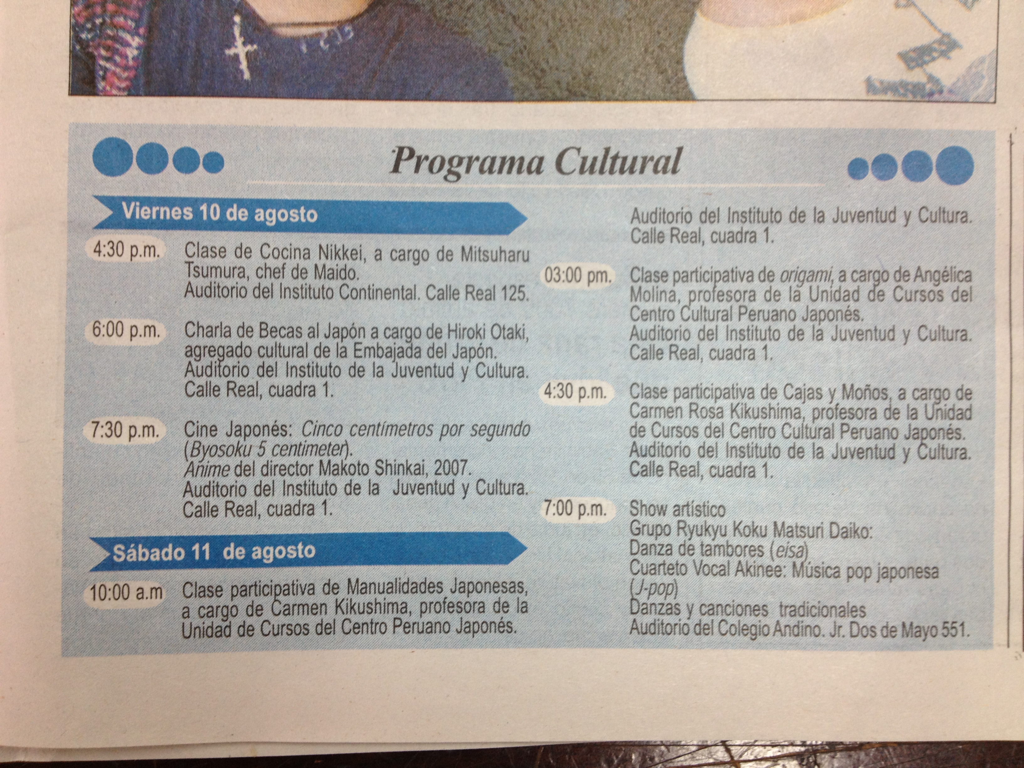 Hola a todos! Estamos súper emocionados porque esta noche estamos partiendo hacia la ciudad incontrastable de Huancayo 😀 Ahora, les contamos un poquito sobre cómo se está dando este viaje de 3 días. Primero, decirles que desde este año el Centro Cultural Peruano Japonés viene realizando la «Caravana de la Amistad» y se trata básicamente de llevar a diversos exponentes de la cultura japonesa a diversas ciudades del país. Esta es la segunda vez que estaremos viajando con la caravana cultural ya que la primera vez fue hace unos meses atrás, cuando nos fuimos a Huacho.