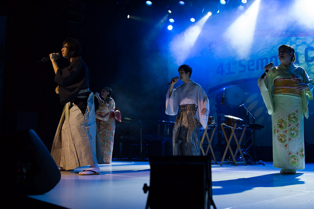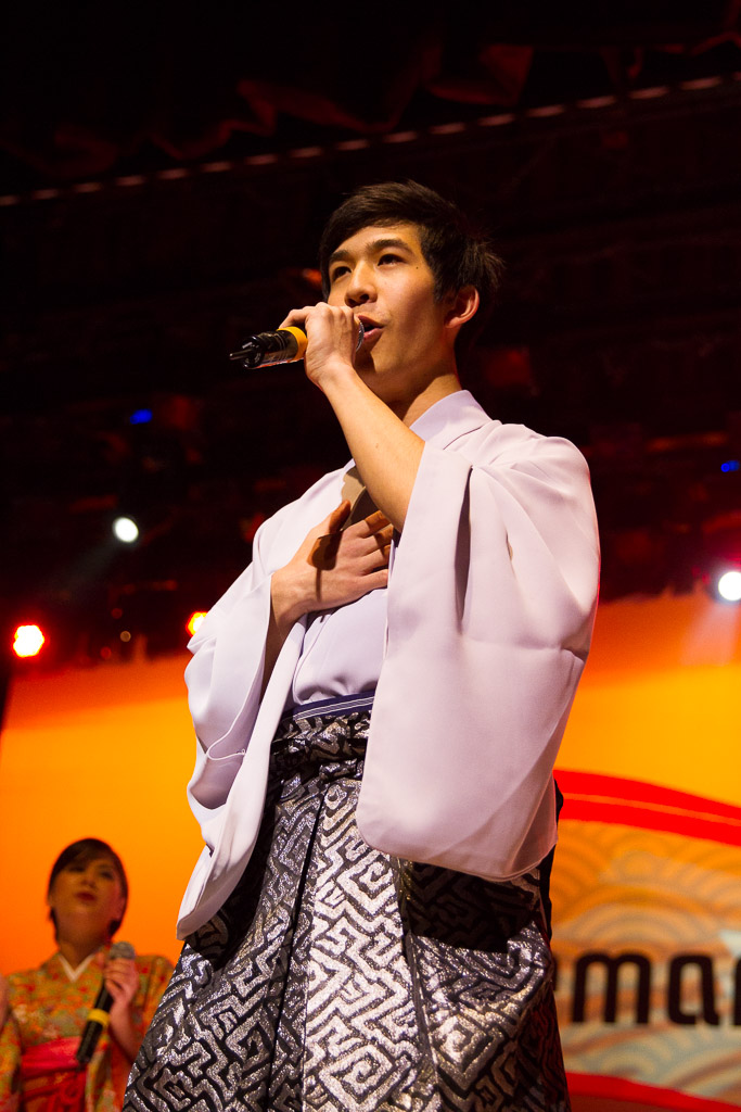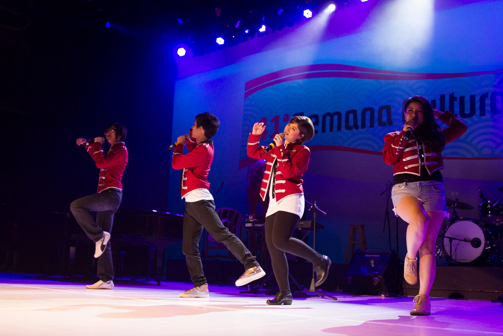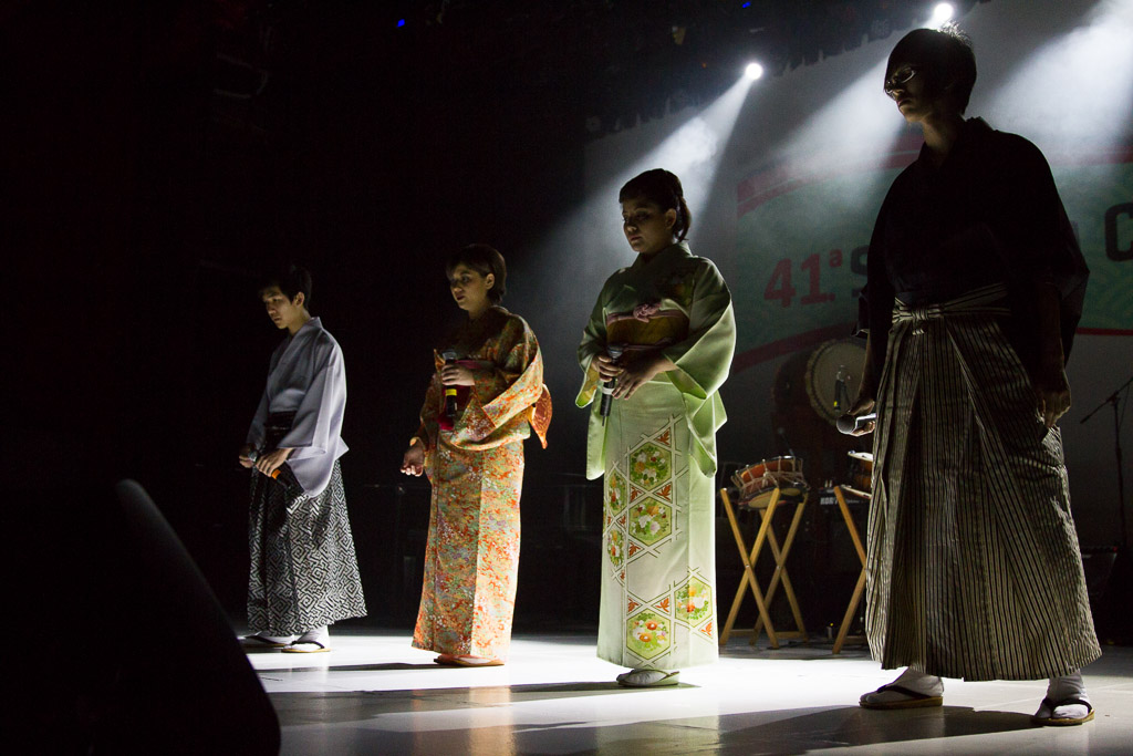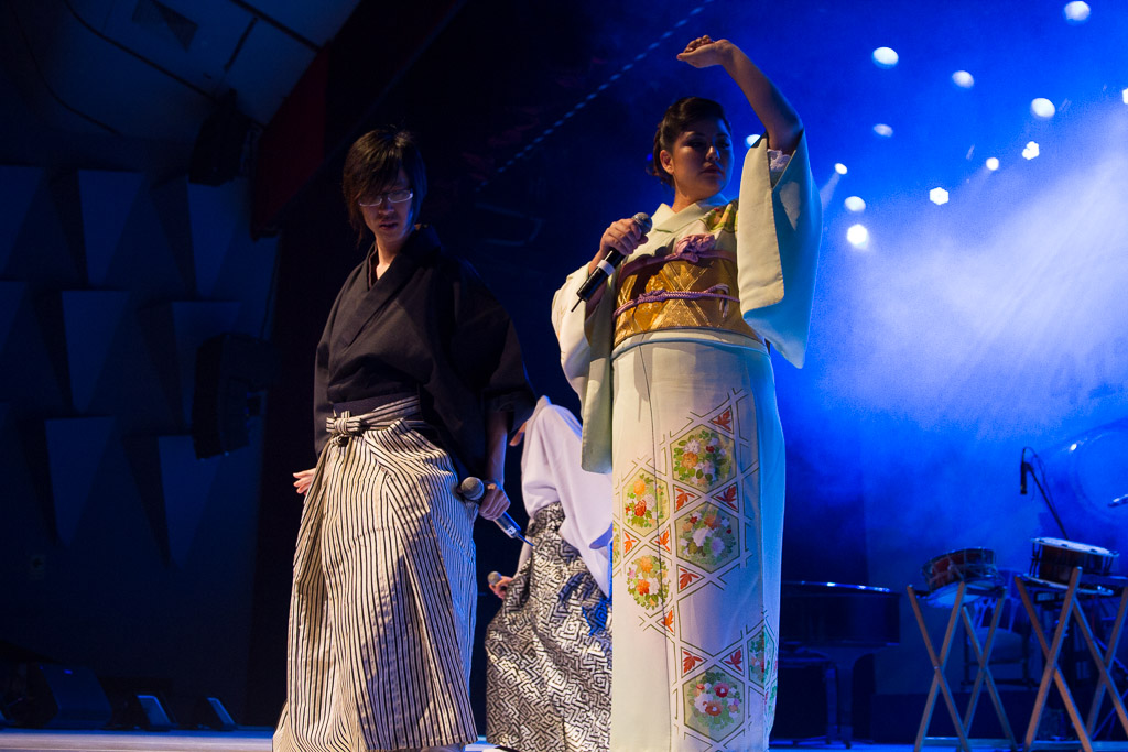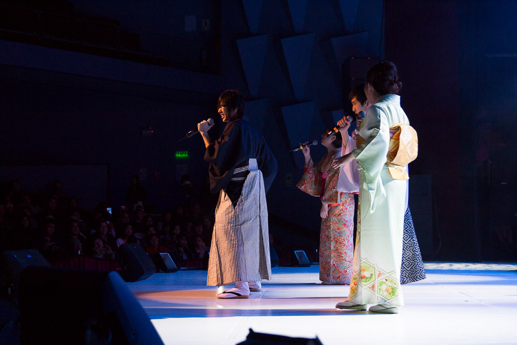 Como comentamos a lo largo del programa, las diversas SMCJ siempre han sido un motivo más para experimentar. Así que ésta vez nos quisimos poner un poco más orientales cantando enka ~Bokyou jonkara, Musume ni, Ringo oiwake, Tsubame gaeshi~ vestidos en Hakama y Kimono (de por sí ponerse el traje fue toda una experiencia), para luego volvernos más occidentales cantando «Dango-San Kyoudai» + «Skipped Beat». Nuestro lado peruano salió con «Para Buscar el Sol» en acústico con el charango, la zampoña y el cajón, acompañados del piano, una pandereta y un shaker que Mabi hizo con una botella de vidrio llenada con arroz y fideos.