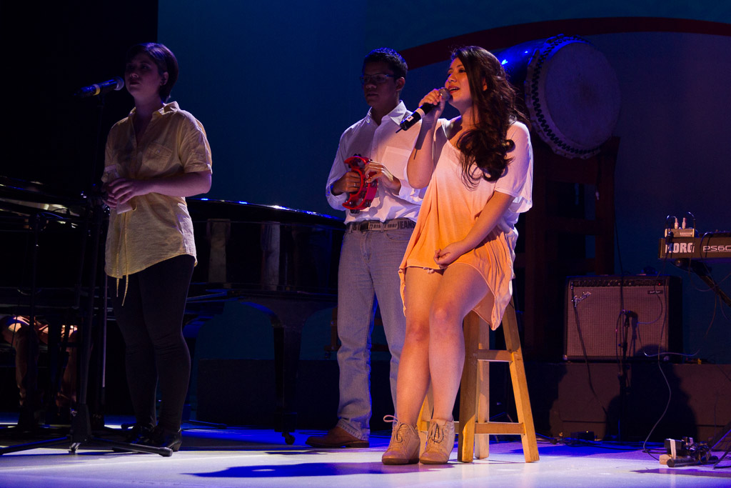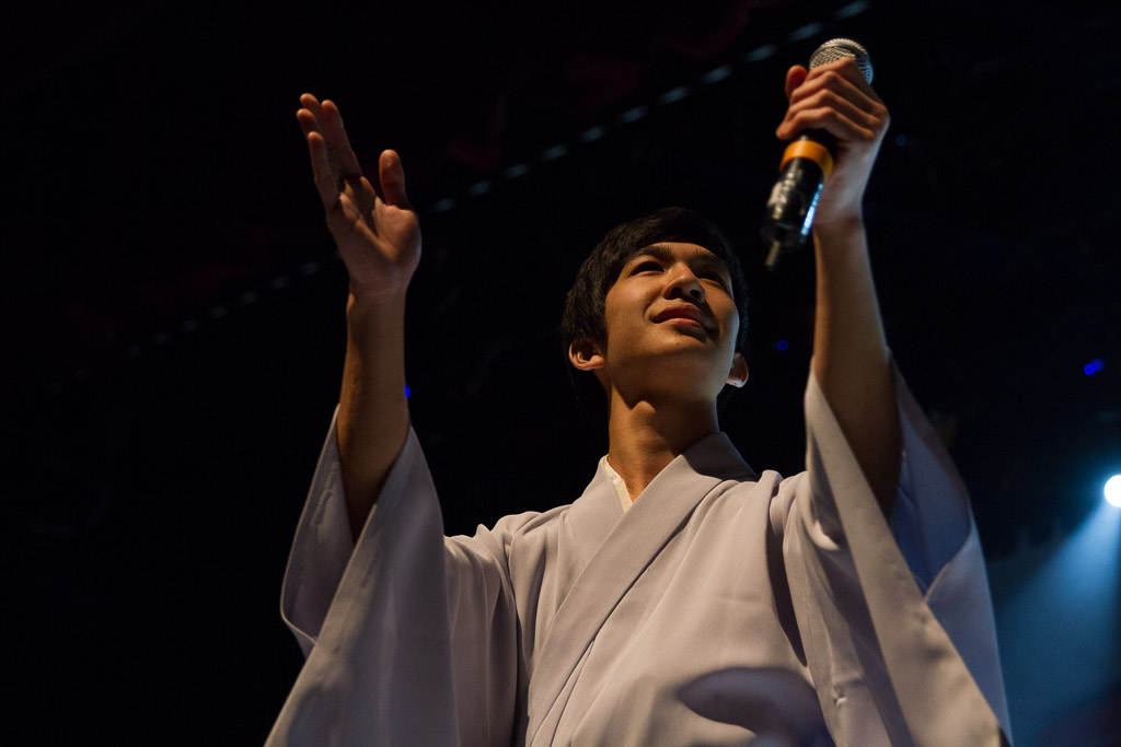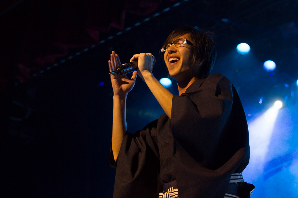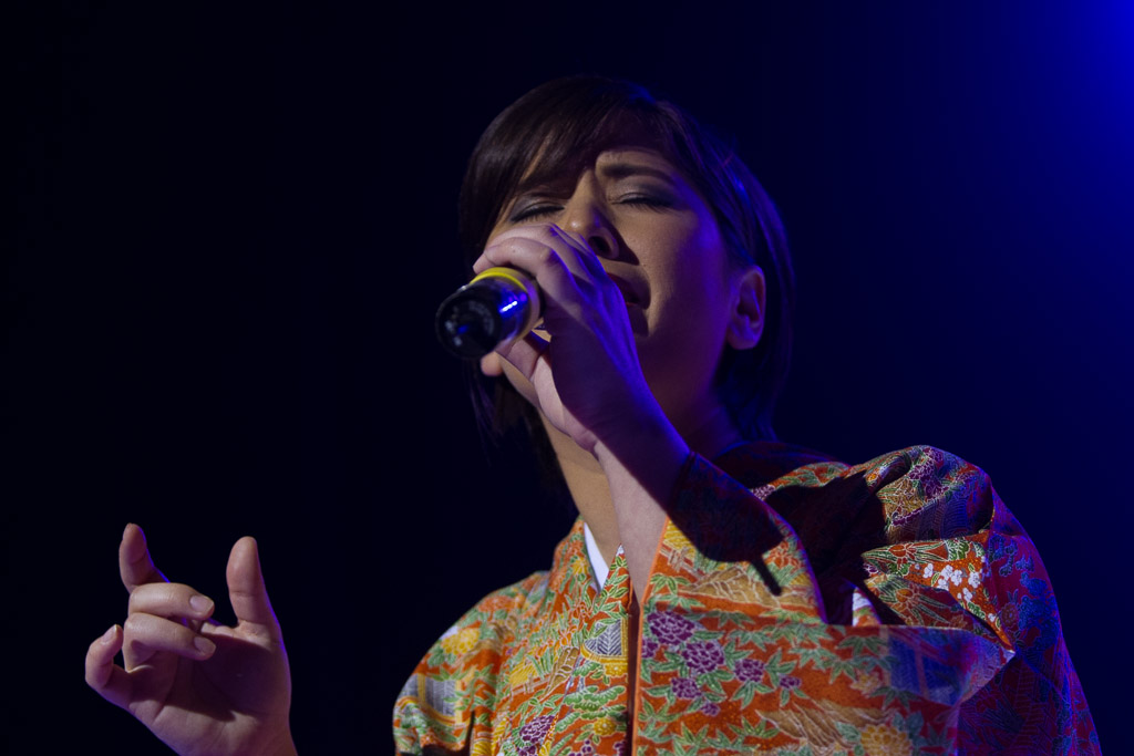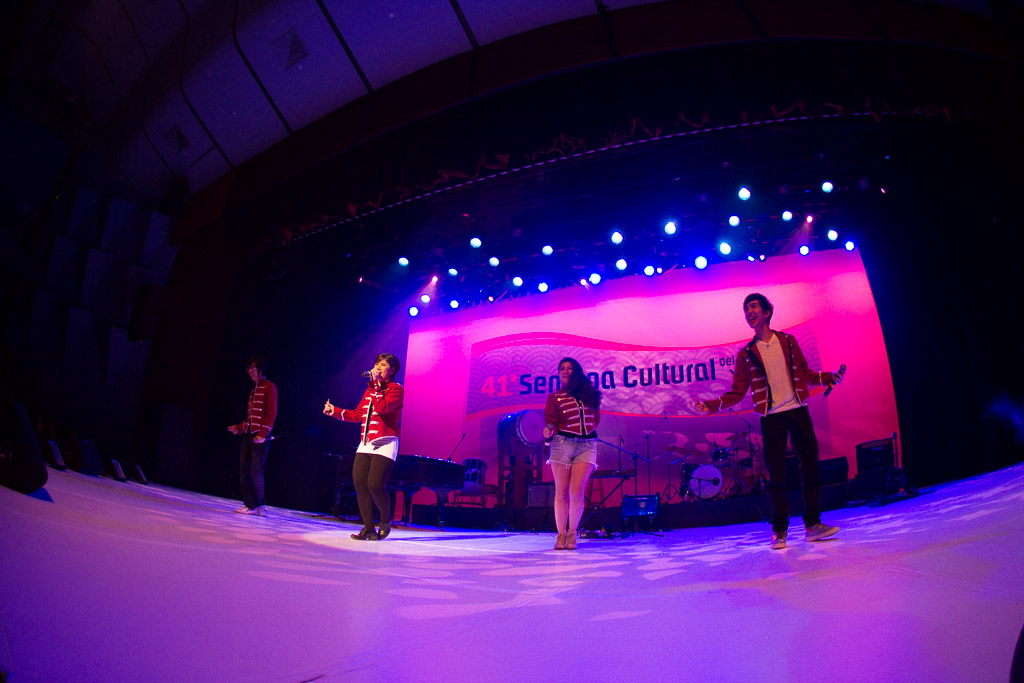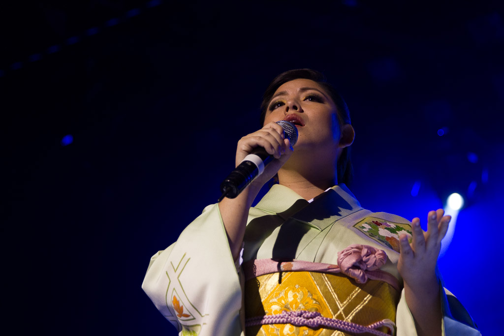 Como comentamos a lo largo del programa, las diversas SMCJ siempre han sido un motivo más para experimentar. Así que ésta vez nos quisimos poner un poco más orientales cantando enka ~Bokyou jonkara, Musume ni, Ringo oiwake, Tsubame gaeshi~ vestidos en Hakama y Kimono (de por sí ponerse el traje fue toda una experiencia), para luego volvernos más occidentales cantando «Dango-San Kyoudai» + «Skipped Beat». Nuestro lado peruano salió con «Para Buscar el Sol» en acústico con el charango, la zampoña y el cajón, acompañados del piano, una pandereta y un shaker que Mabi hizo con una botella de vidrio llenada con arroz y fideos.